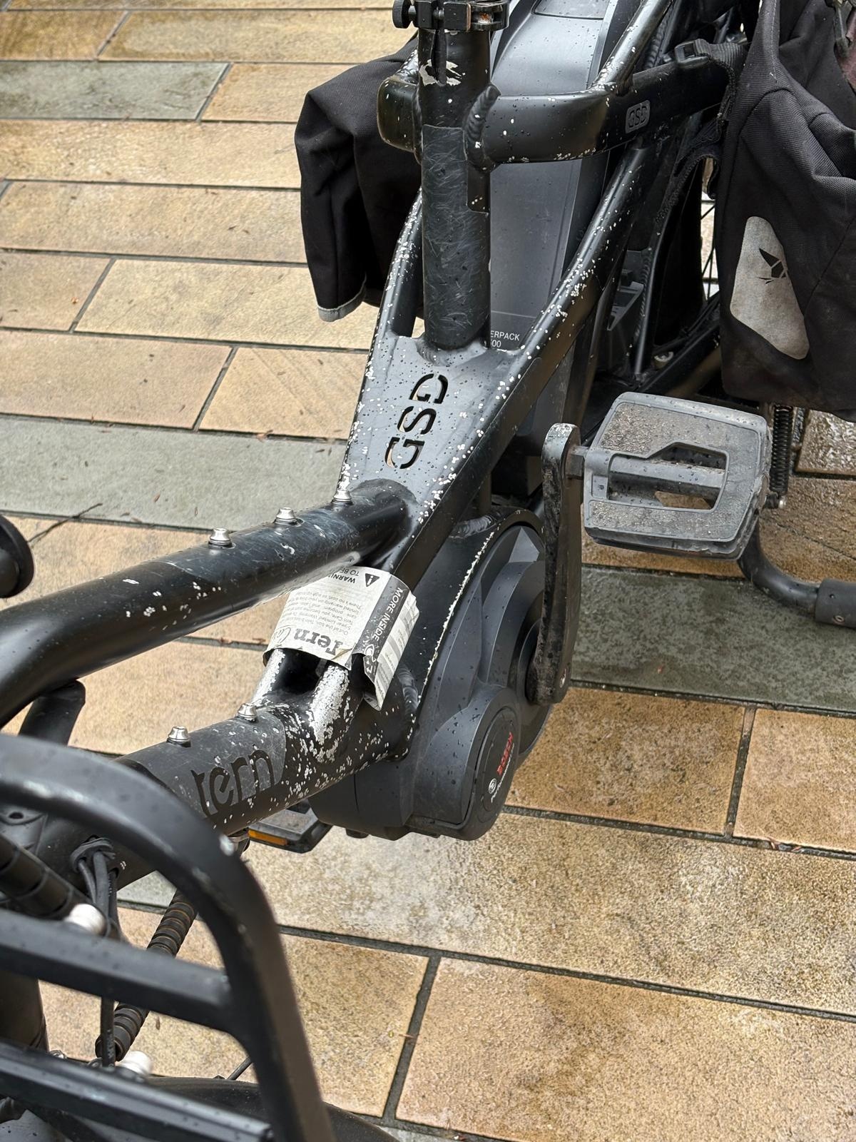 This Tern GSD S10 Gen 1 cargo bike in black is in good condition and has been normally used. It features a reliable chain drive, strong electric assistance, and a compact long-tail design with excellent cargo capacity. A dependable electric cargo bike ideal for family transport, commuting, or everyday cargo needs.