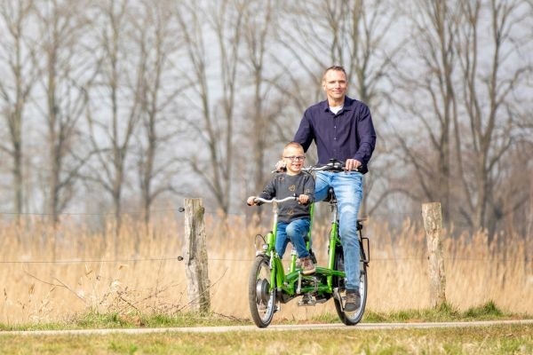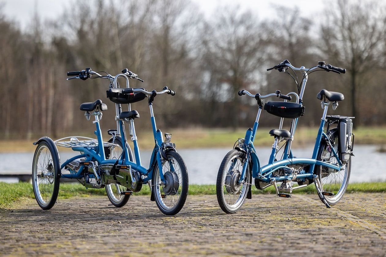 The Kivo is also available as a three wheel variant with two wheels behind the Kivo Plus. In addition, vanRaam also has tandems for 2 adults. The two wheel tandem Twinny and three wheel tandem Twinny Plus. The Fun2Go side-by-side tandem is a three-wheel tandem where the persons sit next to each other.