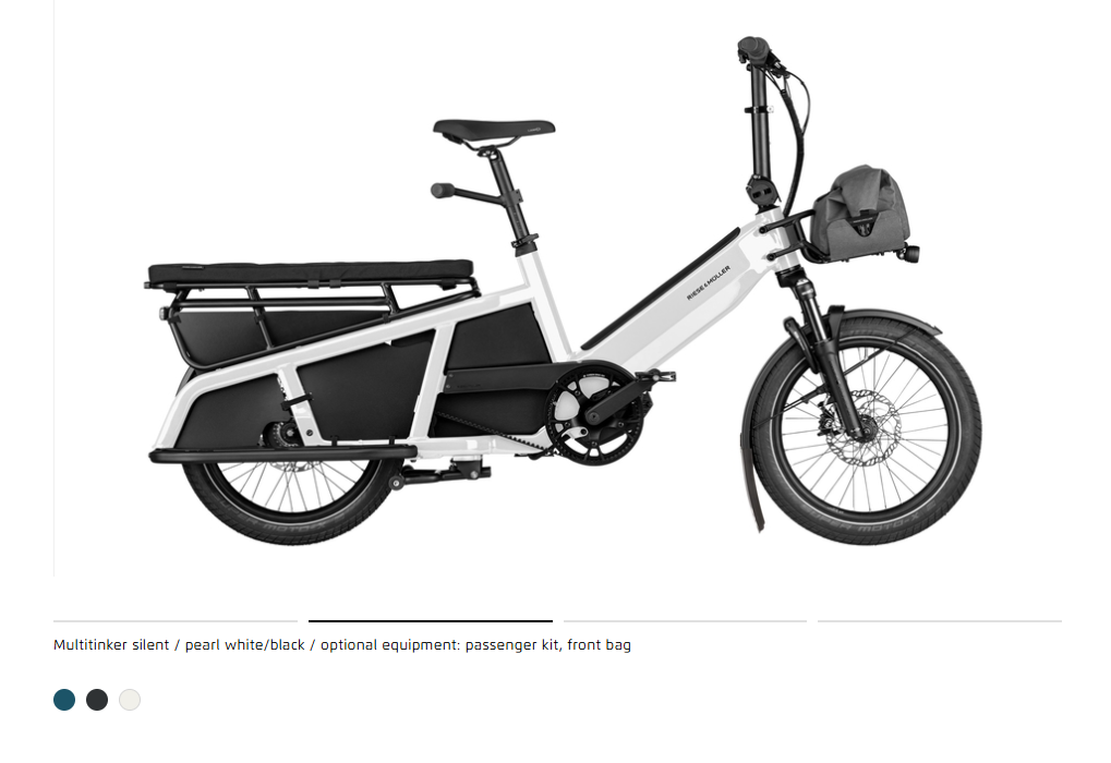 You can safely carry up to two children or a larger passenger on the back of the Multitinker (max. 70 kg). There’s always plenty of room for passengers’ feet with the standard sideloaders, and the spoke guard prevents any accidental contact with the spokes. The Cargo Bike’s low centre of gravity guarantees safe riding enjoyment for the young and not-so-young, and getting on and off the bike could not be easier thanks to its standard bipod stand. Children from 1 to 7 years of age can be carried well protected with the optional safety bar kit (approved up to 50 kg) in conjunction with a child seat DIN EN 14344. The optional passenger kit, with its comfortable foam seat and handle ensures comfortable seating for children aged 7 or older. Please observe national regulations for the transport of children on bikes before using.