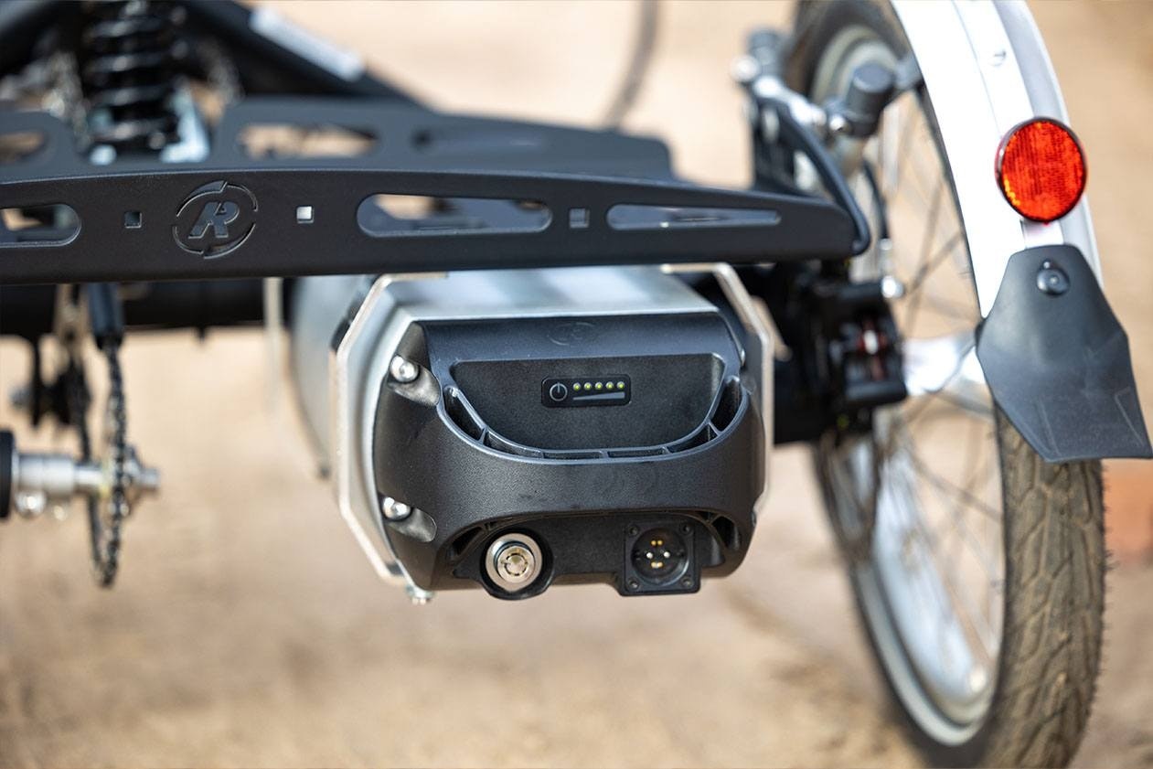 It is possible to equip your Easy Sport Small recumbent trike with the vanRaam electric pedal support. This makes cycling even easier. If you choose this Silent electro system, your bike will be delivered as a smart e-bike. You can then view a lot of information remotely about your battery and bike. For example, information about your bike and changing bike settings. You can customise these to suit your needs. Read more about a vanRaam smart e-bike on the app page.