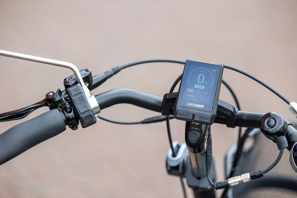 If you choose the optional electric pedal assistance, it will be delivered as a smart e-bike with a Silent smart display. On this display, you can find a lot of information about the battery and the bike. The Silent electrical system from vanRaam is equipped with a start-up aid, which provides additional support when starting to ride. Read more about the Silent smart display in the article 'Instructions Silent smart display for vanRaam bicycles'.