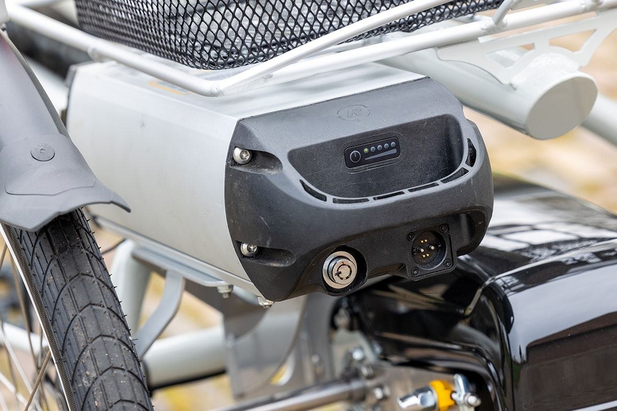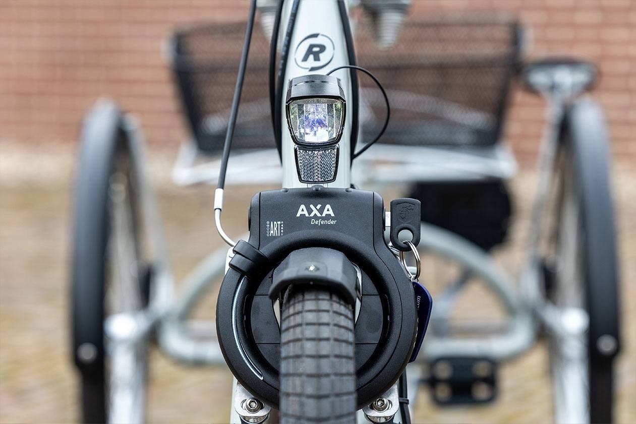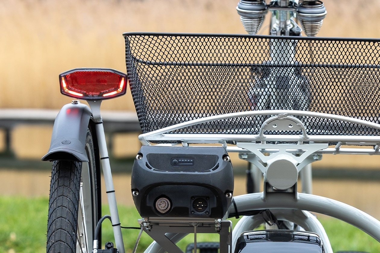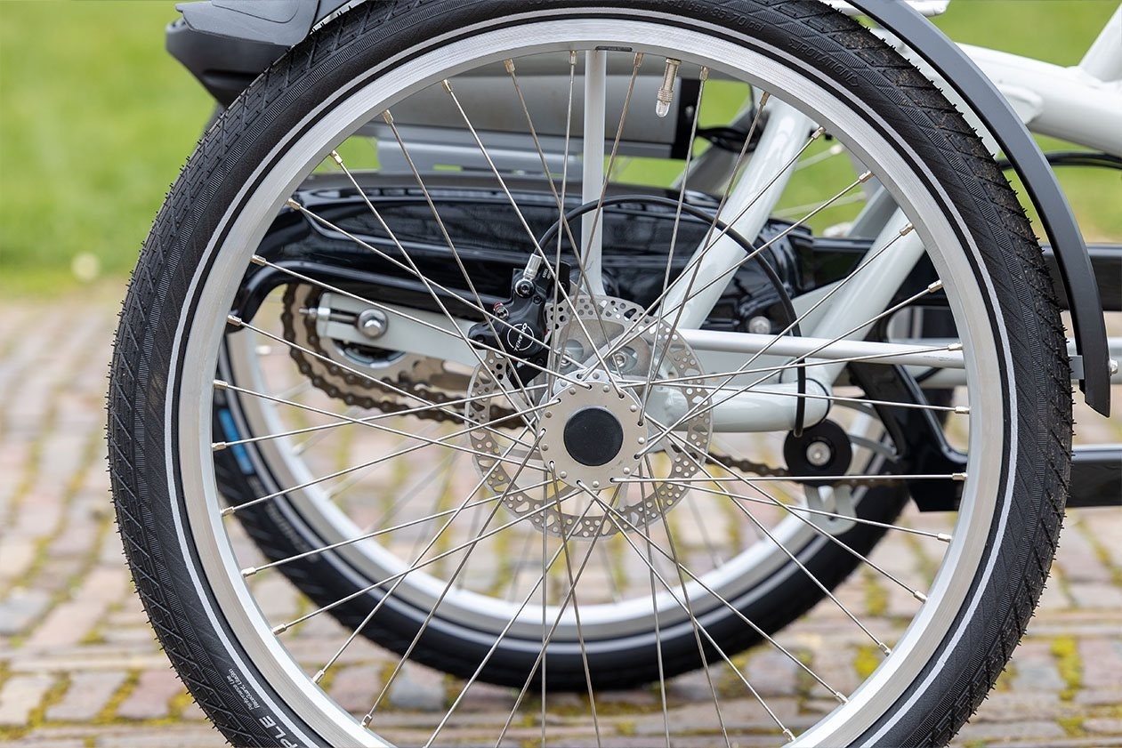 The Twinny Plus looks the same as the Twinny but with two rear wheels. The Twinny Plus three wheel tandem bike is ideal for enjoying a bike ride together. Getting on and off the Twinny Plus three wheel tandem bike can easily be done by the low step trough. Equipped with two rear wheels instead of one, the Twinny Plus trike provides more stability. Because of these two wheels it becomes more easy to get on and off of the bike when its standing still. There is more space between the front and the steering wheel of the person co-driving in the rear, so you do not sit too close together.